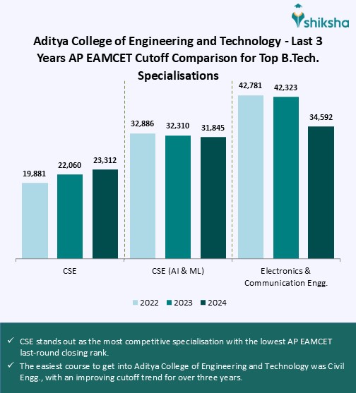 Aditya College of Engineering and Technology AP EAMCET Cutoff Year Wise Comparison 2024, 2023, 2022