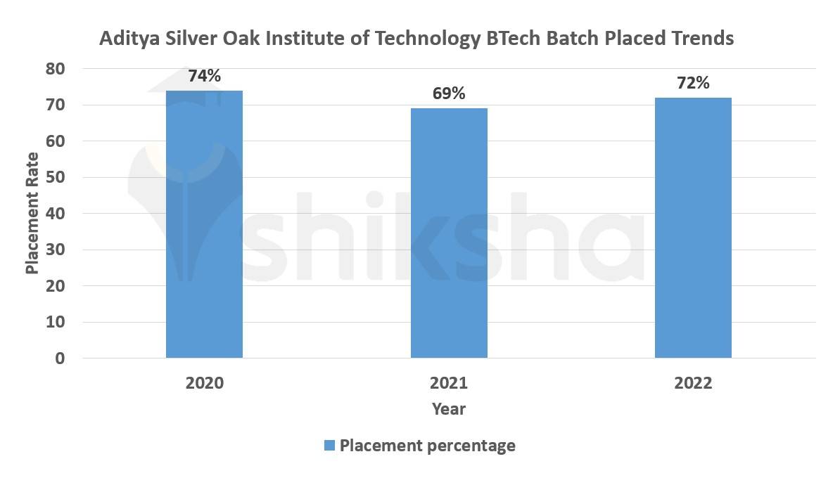 The BTech placement rate at Aditya Silver Oak Institute of Technology has fluctuated between 2020 and 2022. For more clarity, check out the graph below: