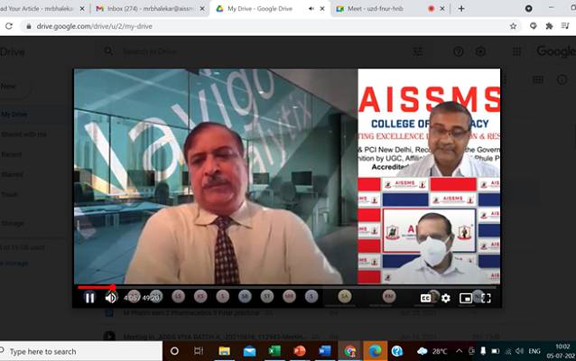 February 10, 2025: The Internal Quality Assurance Cell (IQAC) of AISSMS College of Pharmacy, Pune in association with APTI Central, had organized a five day Online International Level Faculty Development Programme "Insights into Drug Discovery, Development and Regulation" recently. Principal Dr. Ashwini Madgulkar welcomed the participants with best wishes from Hon. Secretary AISSM Society, Shri. Malojiraje Chhatrapati. The aim of the programme was to provide pharmacy faculty across the country with an opportunity to keep pace with the changing scenarios. Stalwart professionals from the pharmaceutical industry from India and abroad including Dr. Y.K Gupta (President AIIMS Jammu), Dr. Ranjani Nellore (Singapore) and Dr. D.G. Naik (Project coordinator MES, Pune) shared their knowledge and interacted with the pharmacy professionals attending the programme.