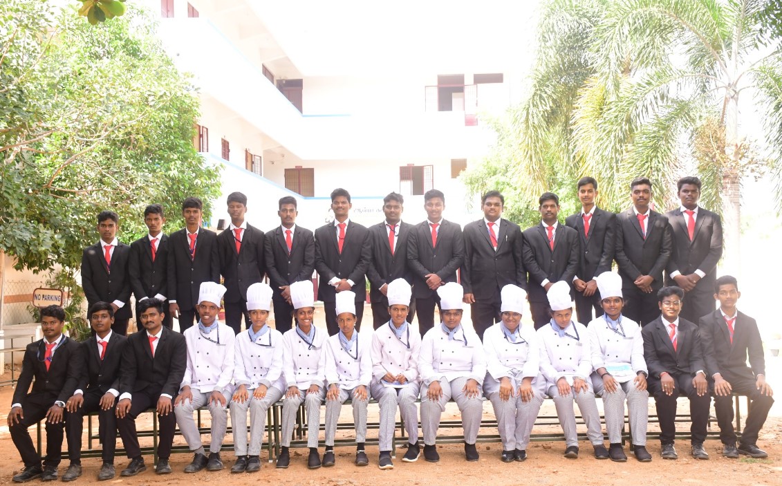 Placements: More than 100 B.Sc students got placed in the last 2 years, and they are earning around Rs. 50,000 per month. Students are working in roles like food production, F&B service, bakery and housekeeping departments. Companies like GRT Hotels, Taj Hotels, Leela Palaces, Le Meridien Hotels, Courtyard by Marriott and Hilton Hotels visit our college to hire students. About 80% of students get an internship every year.