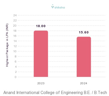 The the highest package package offered during Anand International College of Engineering placements in 2024 stood at INR 15.6 LPA. The highest package offered between 2023 and 2024 are tabulated below: