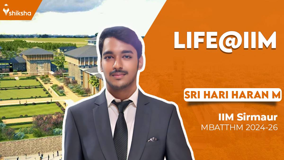 Sri Hari Haran: I am Sri Hari Haran M. Before joining IIM Sirmaur, I never even had the slightest taste of management on the academic side. It was all my extra-curricular activities related to management that helped me.