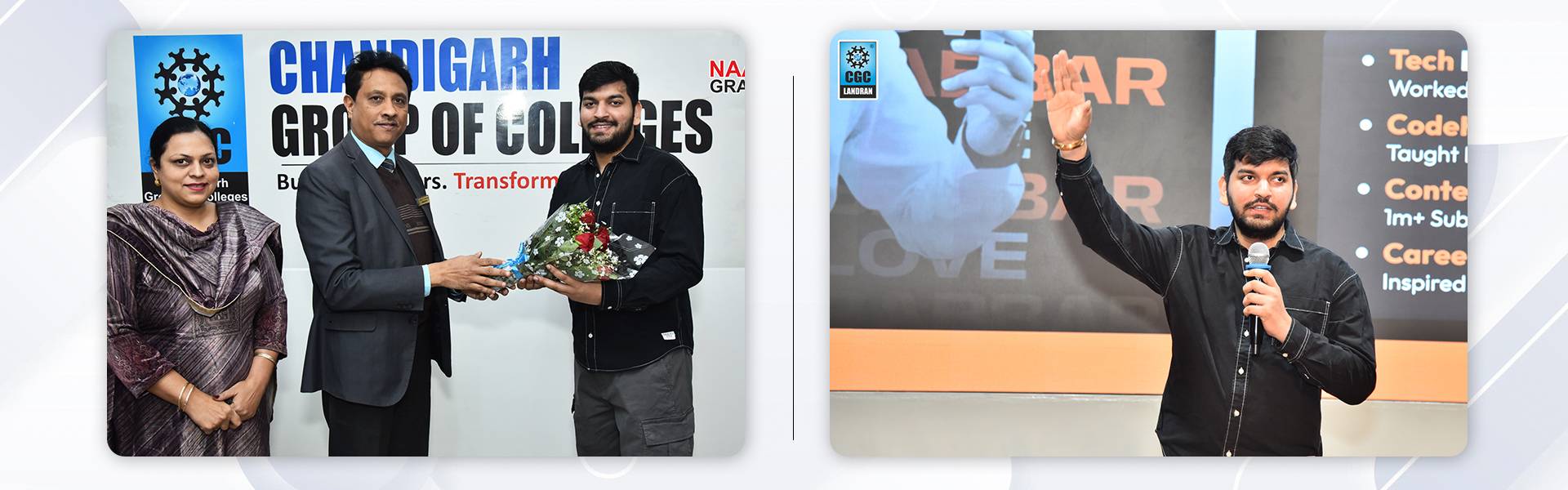 February 17, 2025: Fusion Club-CEC hosted Tech Talk 2025, at the Department of CSE, which was a dynamic and thought-provoking event that excited everyone. The event featured Love Babbar and Lakshay Kumar, the brilliant tech pioneers and founders of CodeHelp, the session was a treasure trove of knowledge. CGCians eagerly gathered at the event, ready to immerse themselves in the world of coding, development, and innovation. With their dynamic and engaging style, Love and Lakshay effortlessly captivated CGC's aspiring engineers.