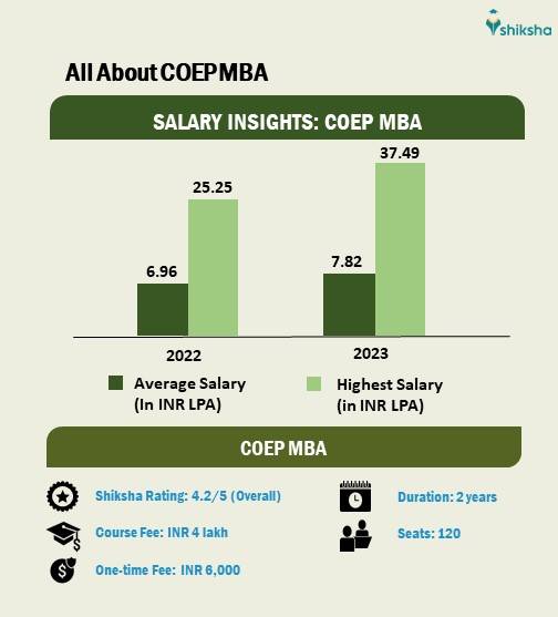 COEP MBA course is offered as a regular MBA course with a focus on Finance, Marketing, and Business Analytics. The PG-level course is also available in Business Analytics. The MBA courses are spread across four semesters lasting for two years. This course is designed to develop candidates' deep learning and knowledge about different facets of Management, like Marketing, Operations, IT, Human Resources, etc., of the course. Furthermore, candidates can refer to the following COEP MBA infographic for more information: