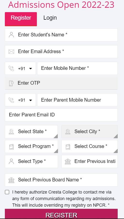The mode of application is online for all courses. Find below the steps to apply for Cresta College: