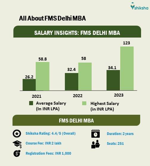 The the highest and average package offered during FMS Delhi MBA placements 2023 stood at INR 123 LPA and INR 34.1 LPA, respectively. Further, a total of 283 offers were made and 80 companies were invited during FMS Delhi MBA placements 2023. Apart from this, the the highest and average stipend offered during FMS Delhi MBA summer placements for the batch of 2022-24 stood at INR 4.02 lakh and INR 3.02 lakh, respectively.