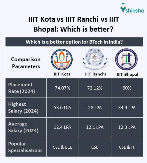 The recent placement data has not been released yet. However, IIIT Kota observed a 75.93% placement rate for the batch of 2024. As per the latest report, the highest and average package offered during IIIT Kota placements 2024 was INR 65 LPA and INR 13.09 LPA. Further, the IIIT Kota CSE average package offered in 2024 stood at INR 13.39 LPA, whereas the IIIT Kota ECE average package offered in 2024 stood at INR 12.41 LPA. The top recruiters of IIIT Kota placements in 2024 included Microsoft, Amazon, TCS, Cvent, Samsung, etc. Candidates can take a look below at the IIIT Kota placement highlights: