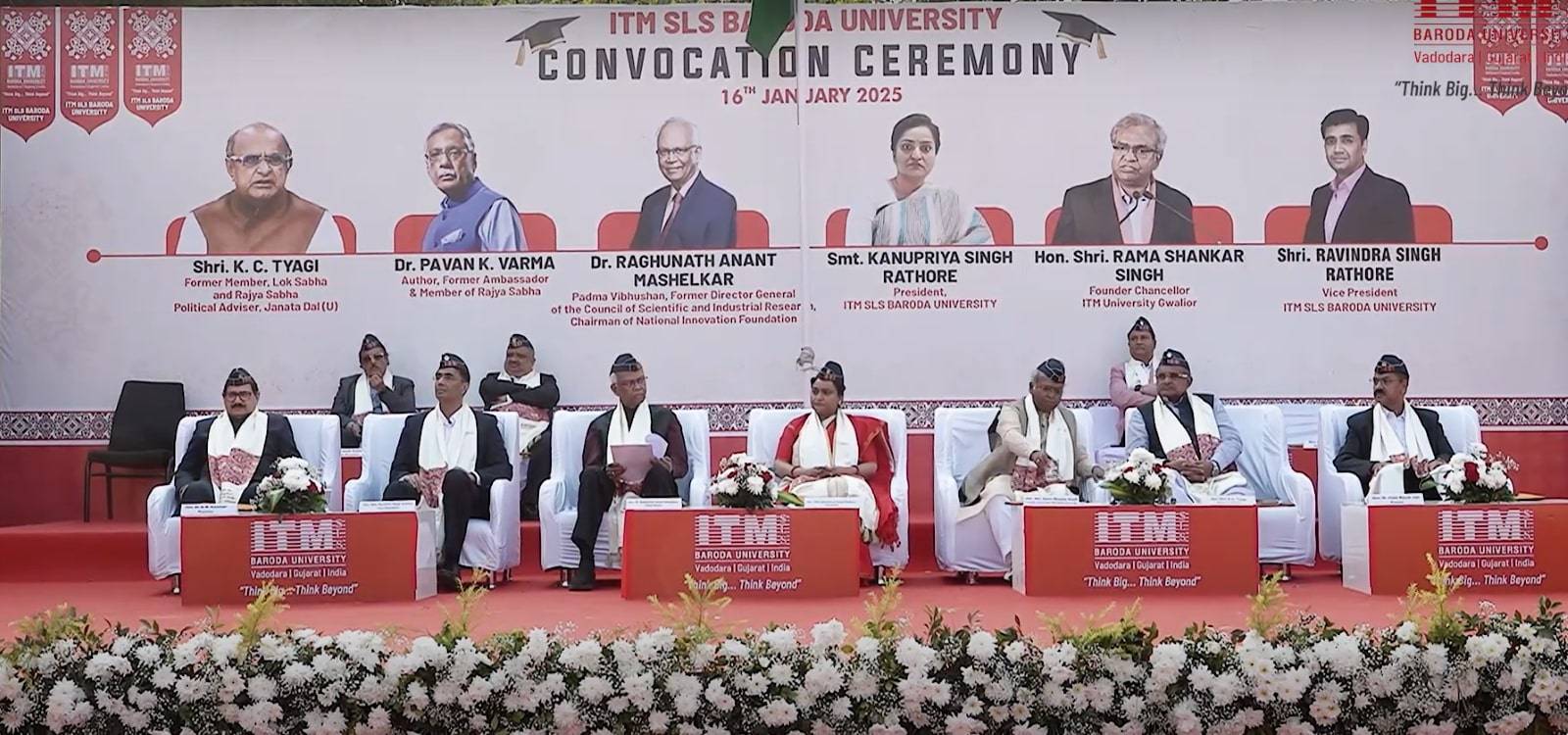 The inaugural convocation of ITM SLS Baroda University was attended by the Chairman of the DRDO and the Former Chairman of ISRO.