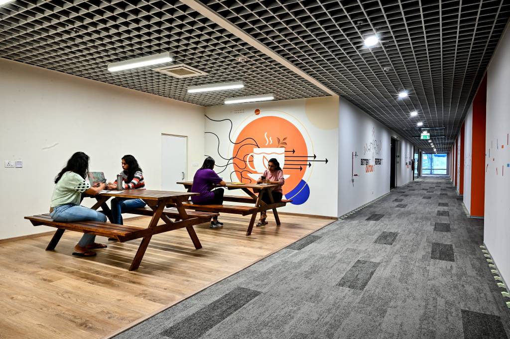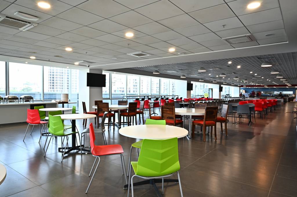 Jio University cafeteria is spacious and serves delicious food cuisines. The cafeteria is a popular spot among the students.
