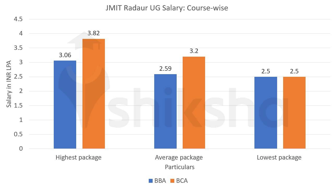 Apart from BTech, JMIT also conducted the placement drive for other UG programmes viz. BBA and BCA. The bar graph below illustrates a course-wise salary offered during JMIT Radaur placements 2022: