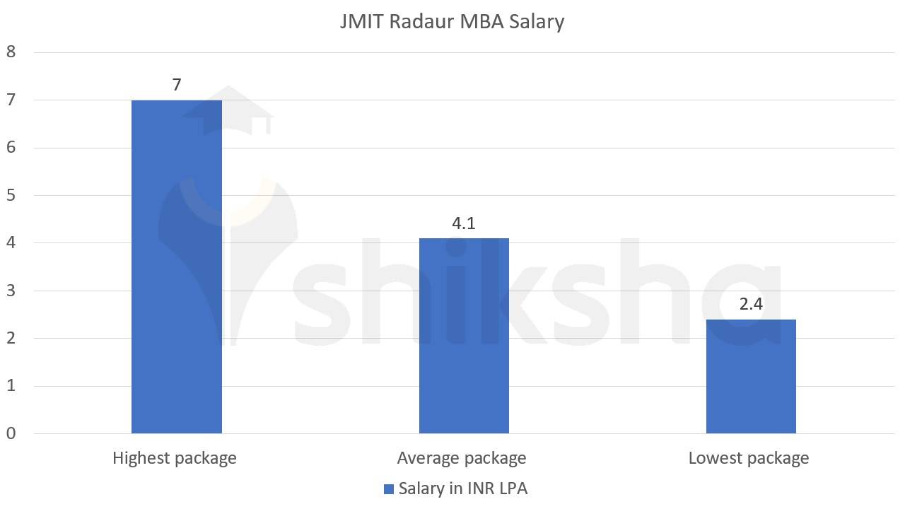 The highest package offered to MBA students was recorded to be INR 7 LPA. The bar graph below shows the salary package offered to the MBA students during JMIT Radaur placements 2022: