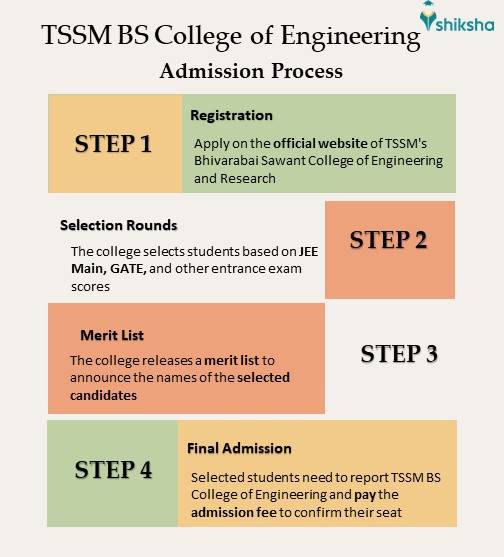 TSSM College of Engineering's admission process includes registration and merit-list preparation of the entrance exam as per respective courses. Candidates must follow the below steps to get a seat in the TSSM College of Engineering: