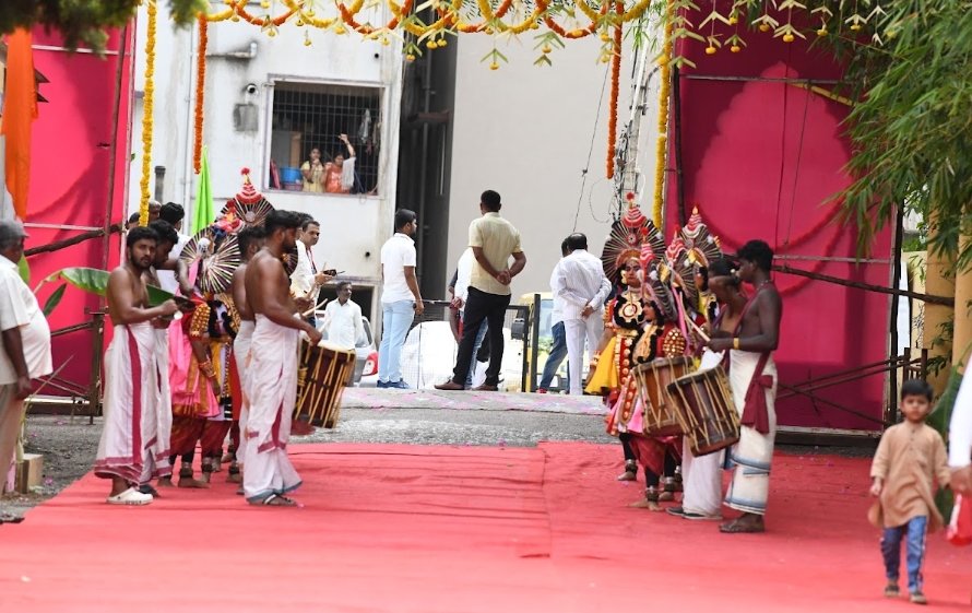 - Students making rangoli