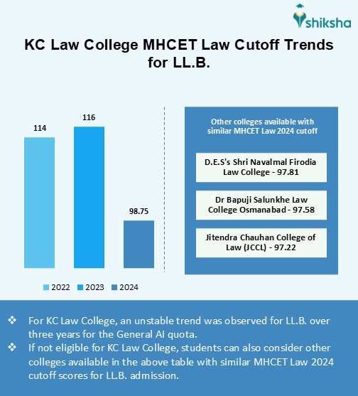 KC Law College MH CET Law Cutoff Year Wise Comparison 2024, 2023, 2022