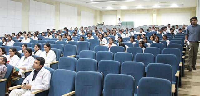 6 air conditioned lecture theatres, Phantom lab (preclinical conservative lab), Preclinical prosthodontics lab and an air conditioned auditorium with a seating capacity of 300 approximately. Air conditioned library is also there.