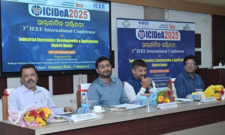 May 8, 2025: The 3rd IEEE International Conference on “Industrial Electronics: Developments & Applications” (IEEE ICIDeA 2025) was organised by the KIIT School of Engineering. The two-day conference was inaugurated by Prof. Milos Manic, IEEE IES President, IEEE Fellow, and Professor at Virginia Commonwealth University, in the presence of Prof. Simon Lambert, Deputy Director for Electrification, Newcastle University, UK; Shri H.K. Ratha, Former Director, ITR Chandipur, and Advisor, IEEE Bhubaneswar Section; Prof. Anurag Sharma, Newcastle University, Singapore, Technical Program Chair, ICIDeA 2025; Prof. Ranjeeta Patel, General Co-Chair, ICIDeA 2025; and Prof. Chitralekha Jena, Organizing Chair, IEEE ICIDeA 2025.