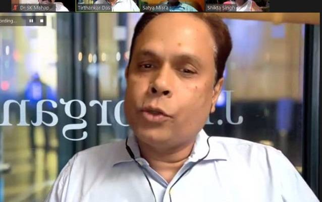 Tirthankar Das, ED, JP Morgan New York & New Jersey, USA; Dr SK Mahapatra, Director, KSOM; and Dr S. N. Misra, Dean, KSOM, and faculty members were present for the virtual launch on June 21, 2021.