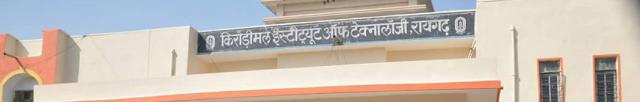 Kirodimal Institute of Technology, Raigarh has courses such as B.Tech which are primarily in the stream of Engineering. Kirodimal Institute of Technology, Raigarh has specializations such as B.Tech specializations in Civil Engineering, Computer Science Engineering, Electrical Engineering, Electronic