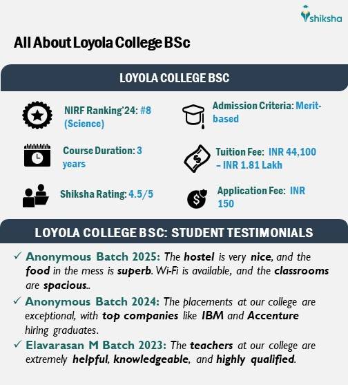 As per the data collated from the verified students' reviews on Shiksha available for Loyola College BSc course: