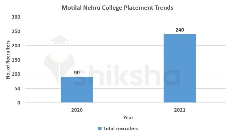 The total number of recruiters associated with Motilal Nehru College in 2021 was 240, which increased from 90 in 2020. Let’s take a look at the graph below for more clarity: