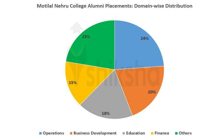 Motilal Nehru College has a strong alumni network across the globe. They are working across different sectors such as Education, Business Development, Consulting and more. Out of all the sectors, a total of 24% of alumni are working in the Operations sector. Apart from this, 20% and 18% of alumni are working in Business Development and Education sectors, respectively. The detailed sector-wise alumni placement record is shown below: