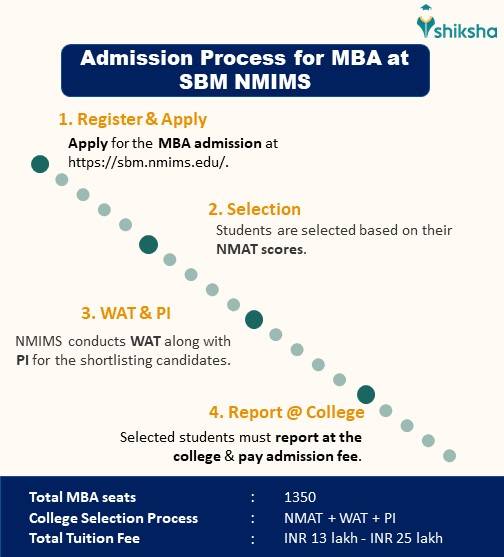 School of Business Management NMIMS accepts NMAT by GMAC scores for admission to the MBA courses. Candidates seeking admission to the MBA course need to follow the step-wise SBM NMIMS admission process, which includes registration for NMAT, registration for NMIMS, appearing for the NMAT exam, selection process, fee payment and document submission.