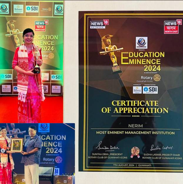 August 16, 2024: Nerim Institute Guwahati is excited to share that the NERIM Group of Institutions has been honored with the "Most Eminent Management Institution Award" by News 18 Assam. This prestigious recognition reflects the hard work, dedication, and excellence that define the institution. The college also thanks its incredible faculty, staff, and students who have made this achievement possible. Their commitment to excellence continues to set new benchmarks in education.