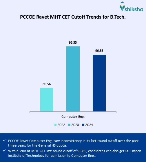 The cutoff for Pimpri Chinchwad College of Engineering and Research (PCCOER) forms every year from entrance examinations e.g. MHT-CET. The maximum range branches wise in 2023 faculty engineering course cutoffs, these two branches have been known to cutoff above 90 percentile of MHT-CET as opposed to