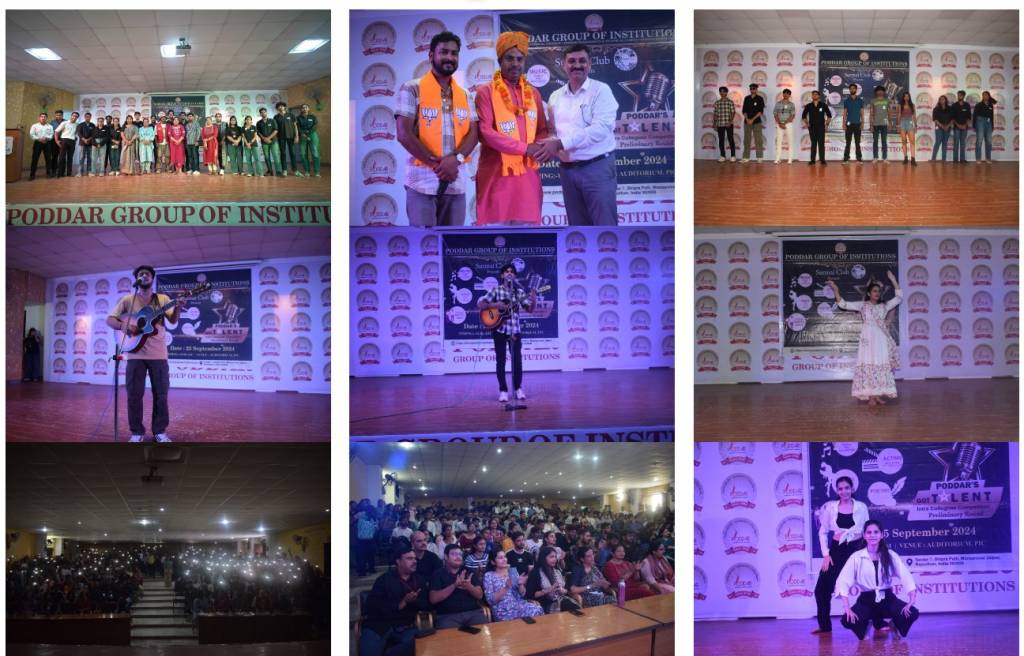January 9, 2025: Poddar International College, Mansarovar, under the aegis of Surmai Club, organized an intra Collegiate Competition *"Poddar Got Talent-Preliminary Round”* on 25-Sep-2024, where all the students got a platform to overcome hesitation, nervousness and stage fear.The event, held at the auditorium of the College, was the chance for students to showcase their talent and gain confidence, enthusiasm, zeal, and opportunity. More than 80 participants shared the stage, showcasing Singing, Modeling, Mimicry, Dance, Poems, Stand up Comedy and Instrumental Music. Nearly 300 students from different streams attended the event with great enthusiasm.The event was organized under the leadership and guidance of Dr.Anand Poddar Chairman,PGI and Ms. Roopal Poddar Vice Chairperson, PGI.Shri Hamid Khan Mewati ji, State President-Minority Front,BJP graced the event as a guest.