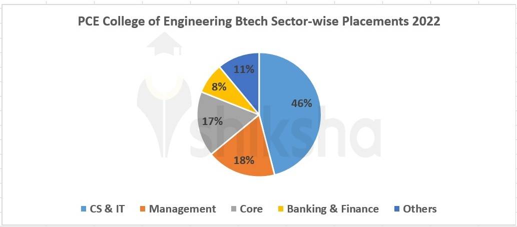 Poornima College of Engineering BTech sector-wise placements 2023 data is not released. Earlier, CS & IT sector emerged as the top recruiting sector that placed 46% of the total students during Poornima College of Engineering BTech placements 2022. The sector-wise placement rate recorded during Poornima College of Engineering BTech placements 2022 is presented below: