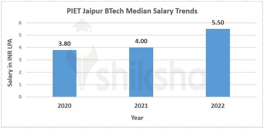 The median salary trends witnessed during Poornima Institute of Engineering and Technology BTech placements over the past three years are presented below:
