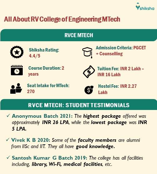 Check out more course details, such as fee structure, eligibility criteria, R.V. College of Engineering MTech average placement packages, etc below: