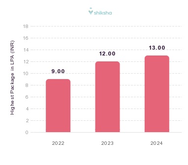 Earlier in 2023, a total of 43 students secured placements and the highest package was recorded at INR 12 LPA, presenting a decrease of 8.33%