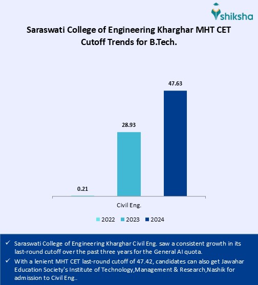 The latest cutoff information for admission to B.Tech at Saraswati College of Engineering in Navi Mumbai is based on JEE Mains scores followed by JoSAA Counselling.