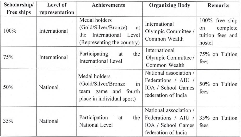 The University allotted 50 seats for sportspeople who excel in a range of sports from cricket, football, and athletics to shooting, chess, and table tennis; as it aims to make sports an inclusive part of the academic curriculum. The scholarship percentile under this impressive initiative ranges from 35% to 100% depending on the number of national & international sports achievements a candidate has.