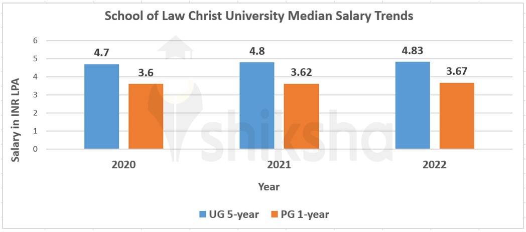 The median salary trends witnessed during Christ Law College UG and PG placements over the past three years are presented below: