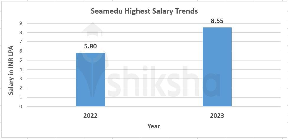The highest package offered during Seamedu placements 2023 stood at INR 8.55 LPA. Further, an improving trend was witnessed in the highest package offered over the last two years during Seamedu placements, which is presented below: