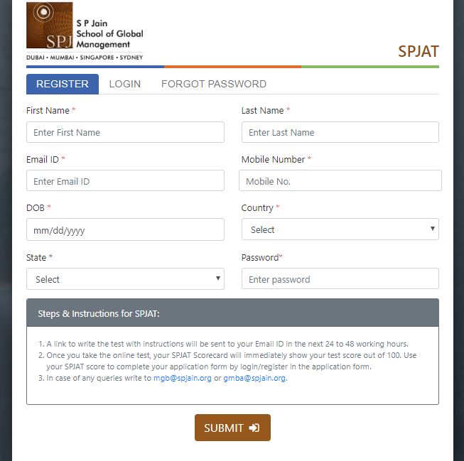 - Click on Register for SPJAT or copy https://appforms.spjain.org/spjregistration.aspx