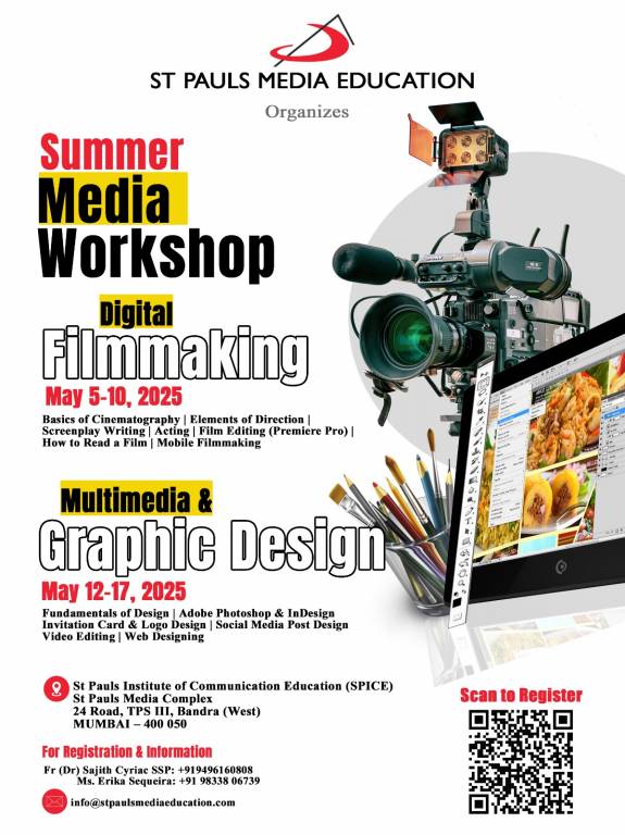 April 23, 2025: Join the Summer Media Workshop at St Pauls Institute of Communication Education (SPICE) and dive into the world of Digital Filmmaking & Multimedia & Graphic Design!