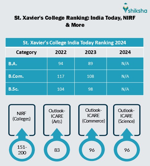 It has been observed that the institute has displayed a fluctuating trend in the 'B.Sc.' category as compared to the ranking of preceding years. In 2023, St. Xavier's College climbed 6 ranks to #98 rank in the 'B.Sc.' category by the India Today ranking. Students can refer to the table below for the St. Xavier's College India Today rankings: