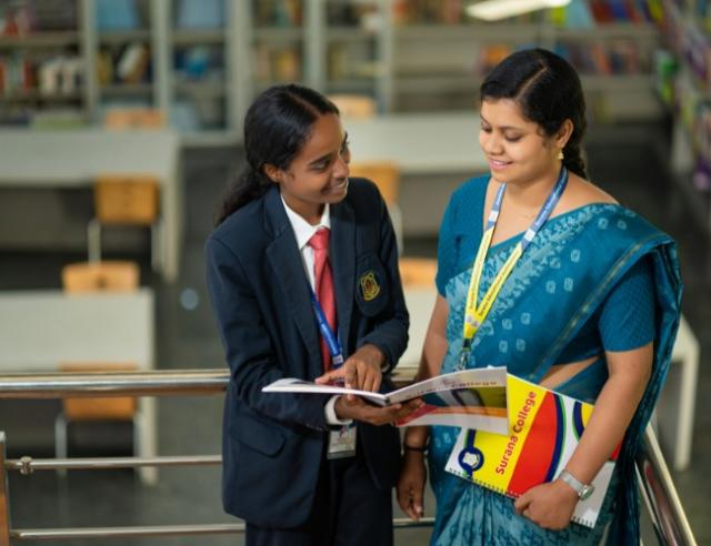 The library at Surana College - Peenya Campus acts as a central hub, featuring well lit, ventilated spaces with ergonomic seating, quiet zones & collaborative areas.