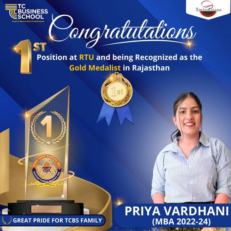 April 3, 2025: The Tirupati College family is filled with immense pride as they celebrate the 14th Convocation of RTU! Priya Vardhani has made history by securing the 1st Rank in MBA and receiving the prestigious Gold Medal from Hon’ble Mr. Haribhau Bagade, Governor of Rajasthan. Her unwavering dedication and academic brilliance have made her an inspiration to all! The entire Tirupati Group gathered to witness this proud moment LIVE, cheering as Priya’s hard work was honored on the grand stage.
