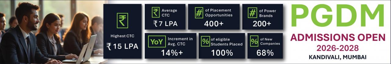 Thakur Global Business School has a good track record of placements for its PGDM course. In 2024, the institute recorded 100% placements for PGDM students. The key highlights of Thakur Global Business School placements for the PGDM Class of 2024 are tabulated below: