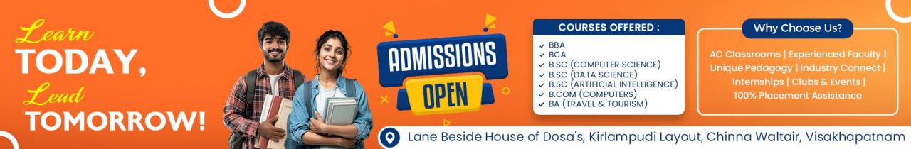 In order to apply for BBA course at Unity Degree College, candidates need to complete Class 12. The selection criteria for the course is merit-based. Further, the course application process is online. The BBA course is offered by Andhra University, Visakhapatnam. Apart from this, the total tuition fee for the course is INR 55,500.