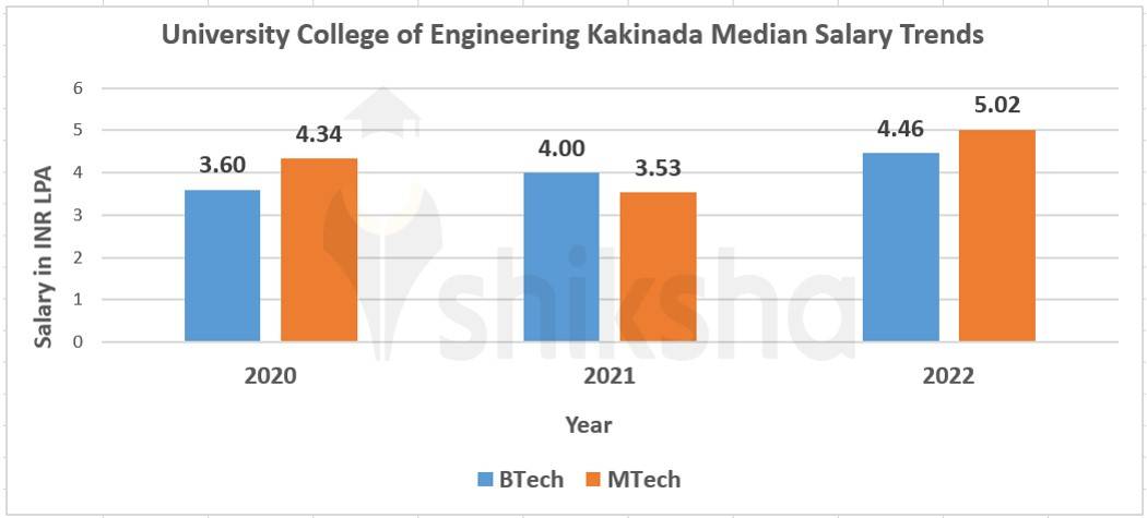 The median salary trends witnessed during University College of Engineering Kakinada BTech and MTech placements over the past two years are presented below: