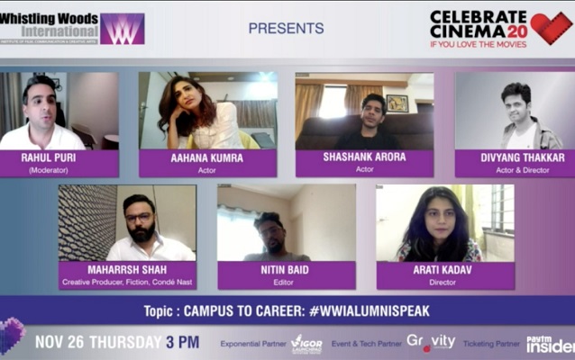 December 1, 2020: To upkeep the morale of its students, Asia’s premier film, communication, and creative arts institute Whistling Woods International celebrated its three-day annual event virtually this year between November 26-28, 2020. The theme of the event was ‘Celebrating Cinema 2020’. Due to the unparalleled times, WWI vowed to donate all the profits from the sale of Celebrate Cinema 2020 tickets for the well-being of Covid-19 warriors.
