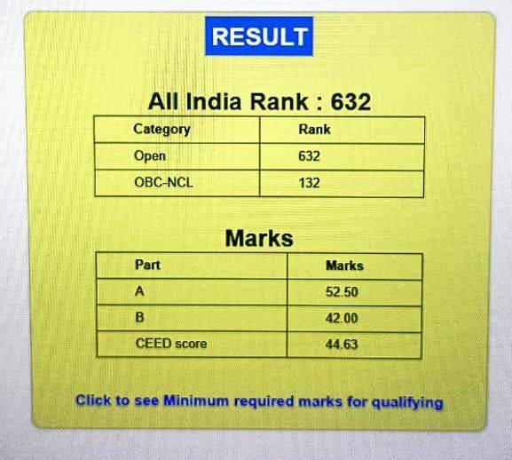The CEED 2024 result contains the minimum qualifying marks for each category. Click on the link to see if you have qualified in the exam.