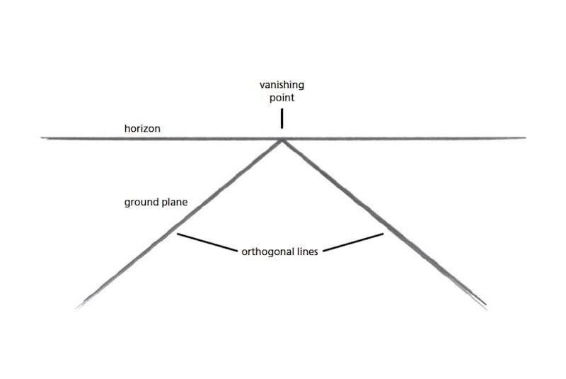 Perspective drawing will have various concepts like horizontal lines, vanishing points, orthogonal lines, and foreshortening.