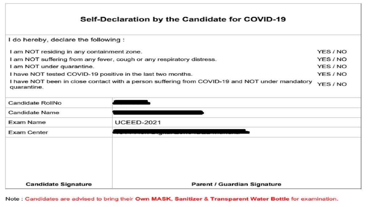 During COVID, it was mandatory for candidates to fill and carry the following COVID-19 self-declaration form.