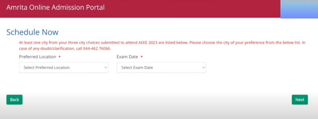 - Please note that the Amrita slot booking will not allow the candidate to book their slot after the last date.